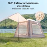 - 【360° Ventilation & Bug-Free】 The inflatable tent features four-sided mesh windows and a large door, providing optimal airflow while keeping bugs out. Say goodbye to stuffy nights and enjoy a fresh and breezy camping experience