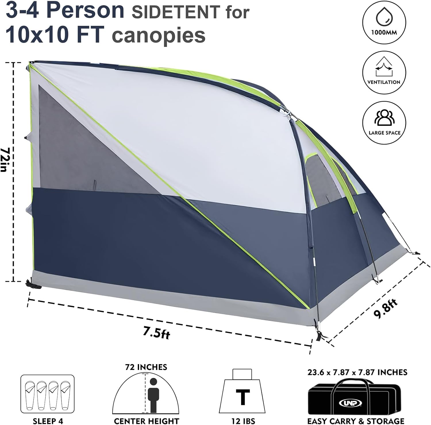 • Fits Most 10x10ft Canopies, 9.8′ x 7.5′ Setup Size, 72in Height; Accommodates 2-4 People or 4 Sleeping Bags.