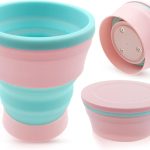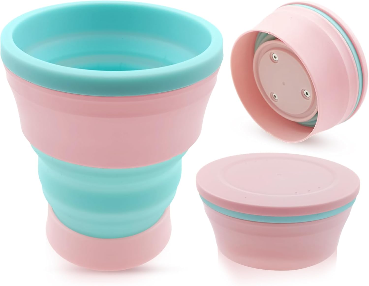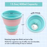Compressible Camping Cup (13.5 oz) – Silicone Folding Travel Cup with Lid, Base, Heat and Cold Resistant, Suitable for Outdoor Drinking (Berry Mint)