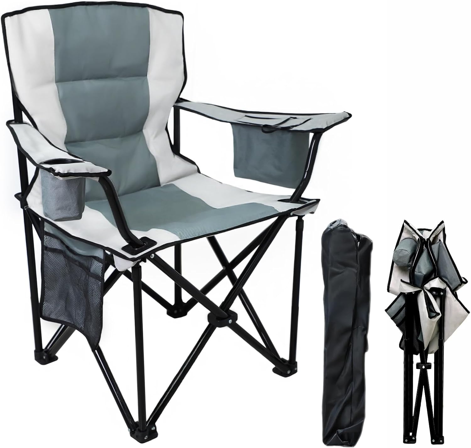 - 【Durable 600D Oxford with Sponge Cushion】 oversized folding chair (27.01in×21.26in×21.65in) is crafted from double-layer tear-resistant 600D Oxford fabric, paired with soft sponge cushioning. The rugged material ensures long-term durability against outdoor wear, while the breathable fabric prevents sweat buildup—ideal for all-day seating at the beach, campsite, or backyard.