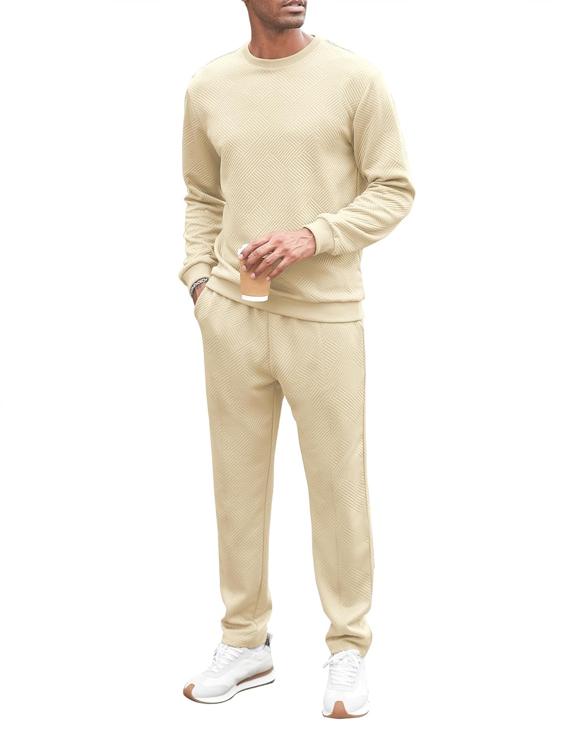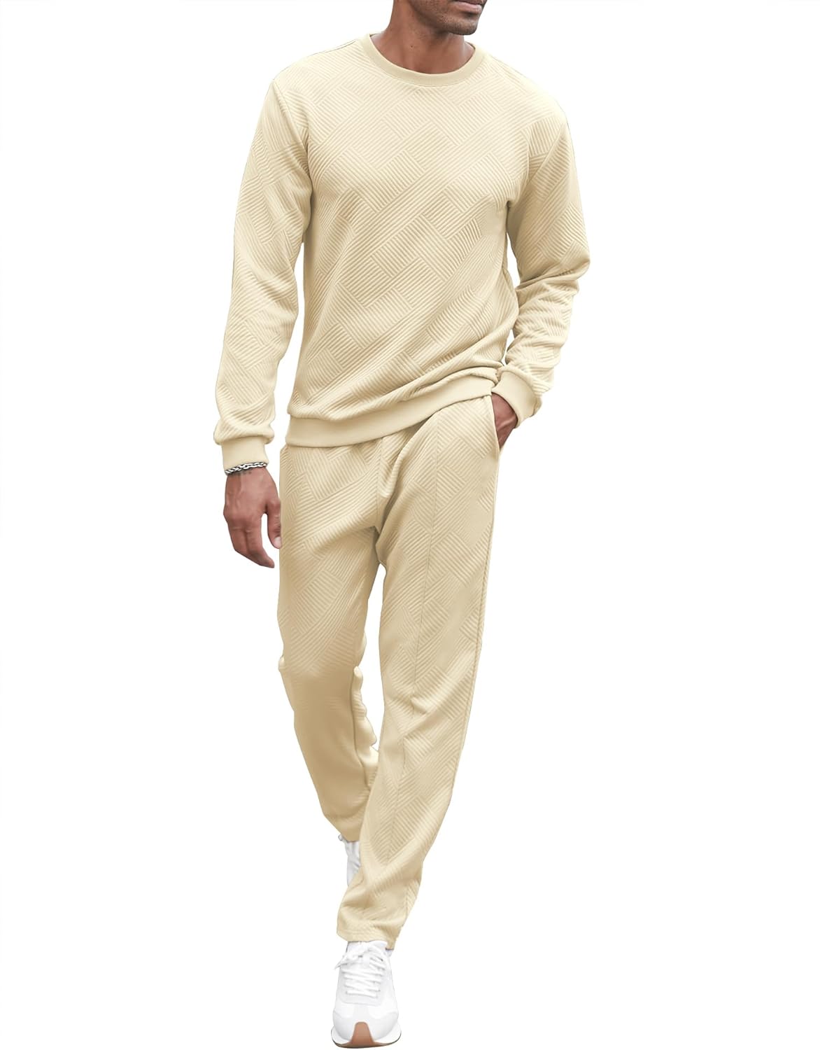 - Design:Mens long sleeve athletic tracksuits with 2 side pockets,tracksuit made with Knit Jacquard textured material and stylish design.The elastic waist of pants is d with drawstring,which can be ajusted at will.