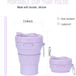 Purple Silicone Folding Travel Mug (450ml) – Leakproof Design for Hot and Cold Drinks, Includes Straw, Convenient for Travel, Office, and Home Use, Dishwasher Safe